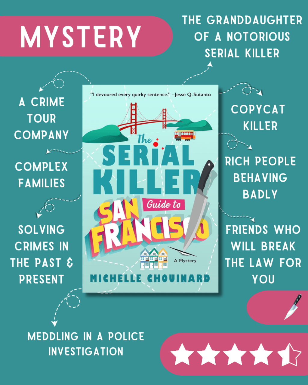 Capri Sanzio is a San Francisco tour guide with a darkly fascinating niche—serial killers. Her expertise comes from a personal connection: her grandfather was convicted as the city’s most infamous murderer, “Overkill Bill.” Despite the conviction, Capri has never believed in his guilt, though she’s never actively sought to prove his innocence. But when a copycat killer starts claiming victims across the city, Capri and her daughter find themselves under suspicion by the SFPD. To clear their names, Capri must uncover the truth behind the current murders and unravel the secrets of the past—before the killer gets too close.