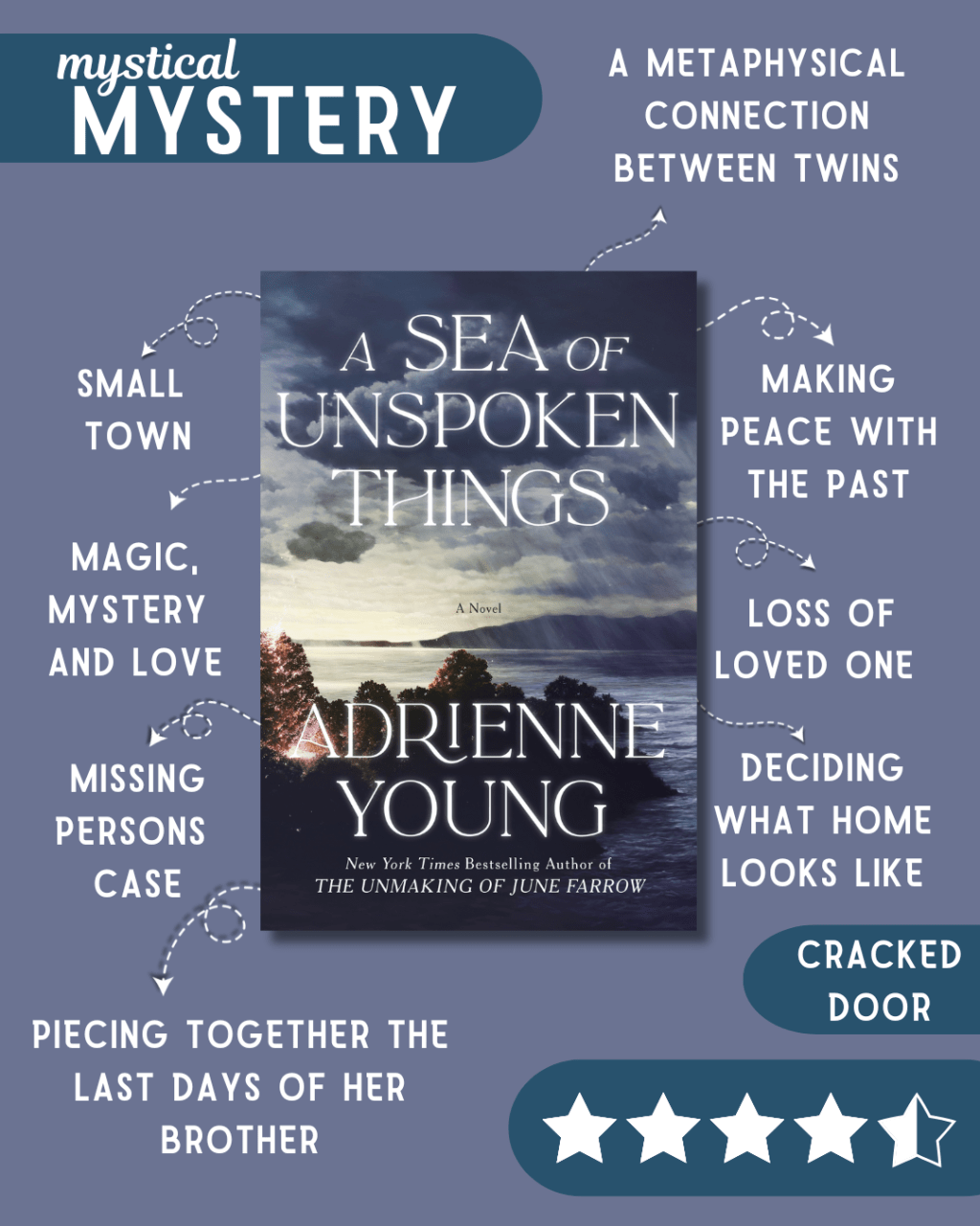 This novel is an atmospheric and deeply character-driven mystery, infused with a touch of magical realism. I was immediately pulled in by the quiet, secret-filled dynamics of this small town, James’s haunting guilt over leaving, Micah’s steady resilience, and Johnny’s lingering, spectral guidance. Young balances slow-burn tension with a crescendo of twists toward the end, elevating the stakes. While the pace starts gently (a deliberate choice, not a critique), the final act delivers a flurry of revelations that reward patient readers. Fans of The Unmaking of June Farrow will recognize a similarly moody, reflective tone here, though the magical elements are more subtle in this story.