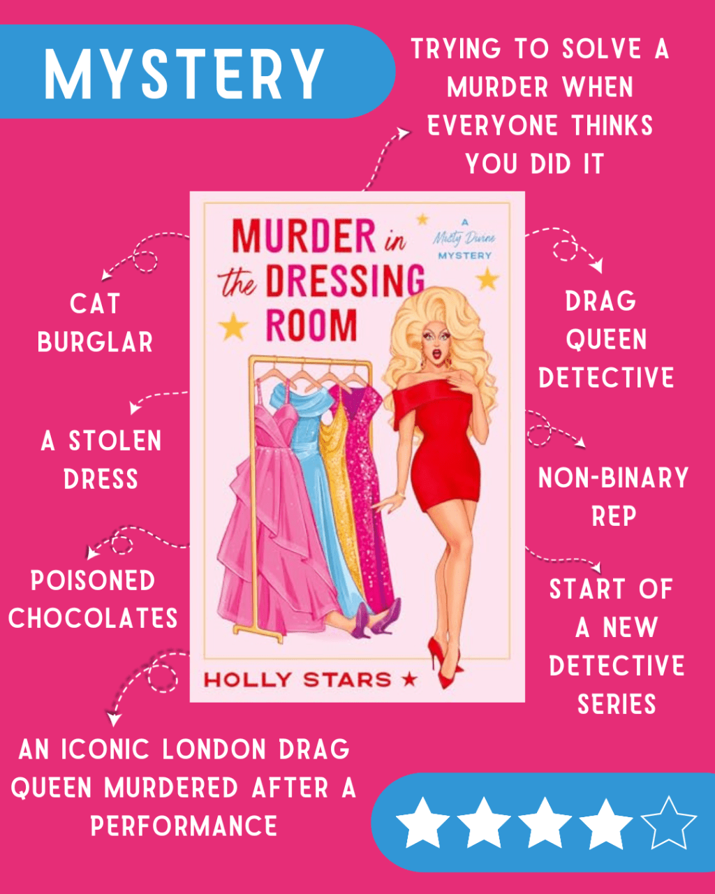 It seems this may be the start of a drag queen detective series, and I couldn’t be more excited. Holly Stars has created such a compelling, multi-faceted character in Misty Divine – I can’t wait to see what mysteries she solves next!