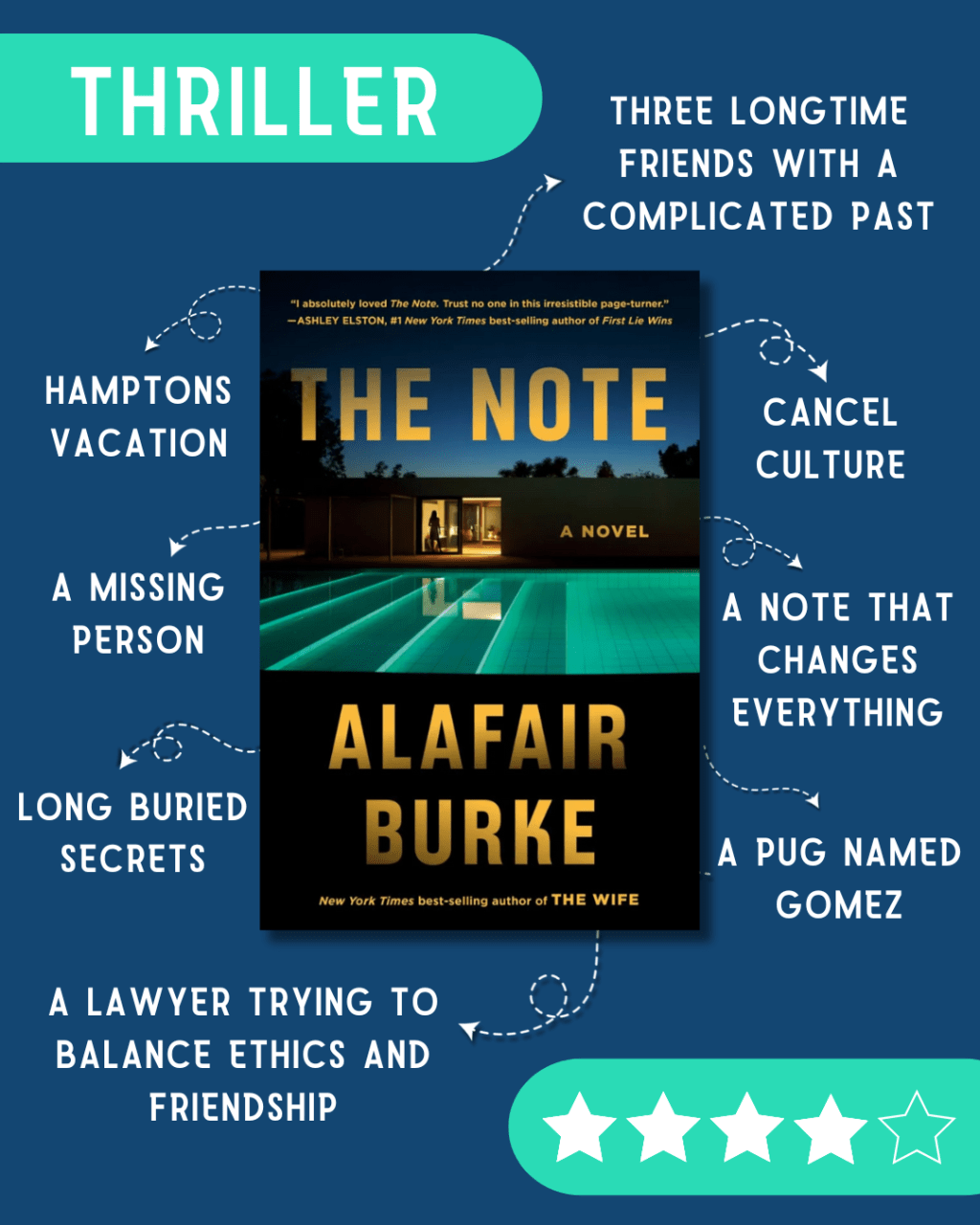 This was a fun one! I enjoyed how Burke crafted each of these three friends so wholly, with interconnected friendships and tragedies, friendships that ebbed and flowed, and the shorthanded communication & inside jokes that come from a lifetime of friendship. She also gave them each unique choices and complications that created conflicts over years. A slow-build thriller that builds chapter over chapter after the initial setup and event, this was neither a novel where I foresaw the events far in advance or didn’t see them coming. Burke did a great job keeping me only a fraction of a step ahead of May as she pieced the story together.