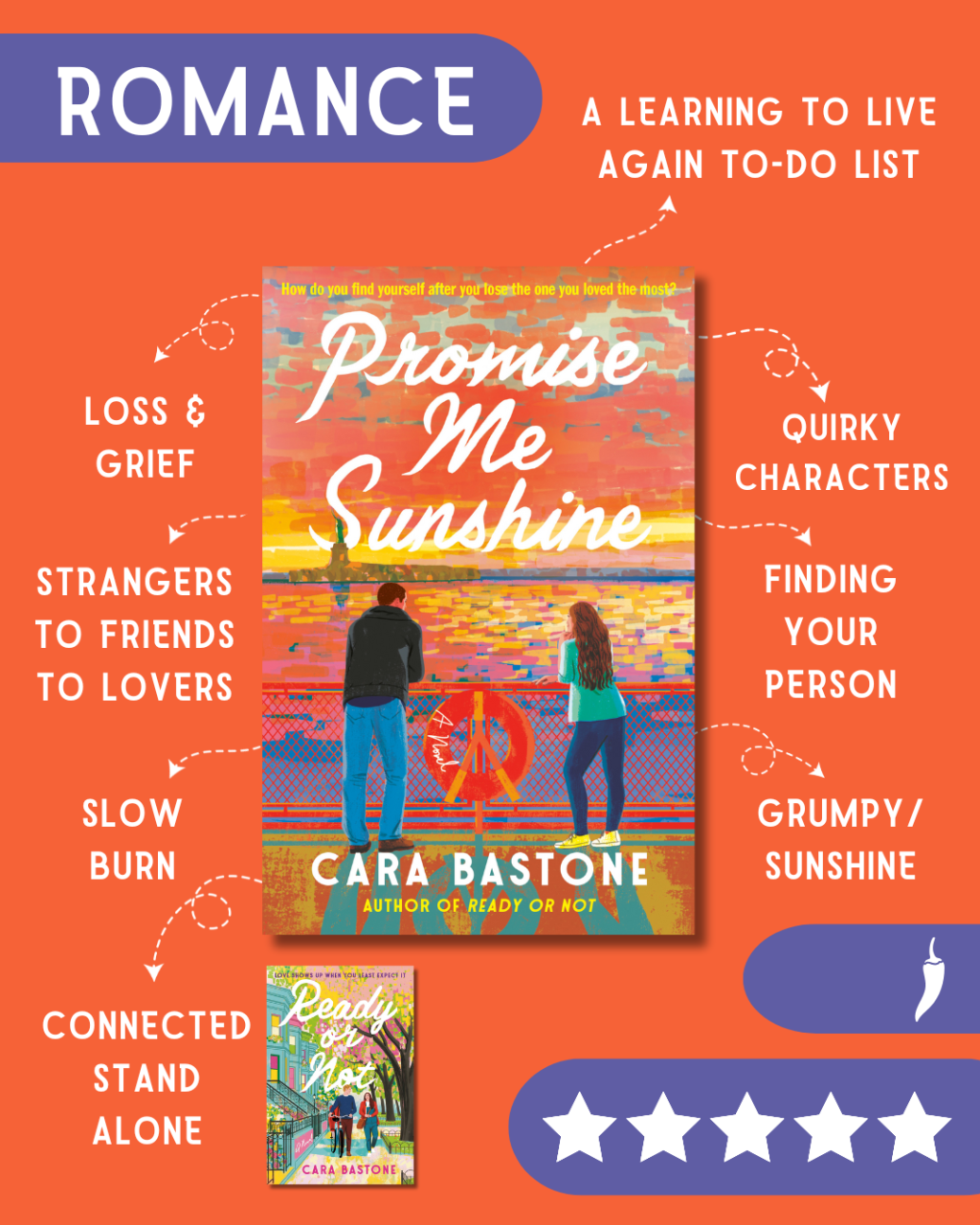 I was an absolute mess reading this book. It’s a love story in so many ways – not just between Miles and Lenny, but between Lenny and Lou, Miles and Ainsley, Ainsley and Reese, Miles and Reese, and the friendships discovered along the way. At its core, Promise Me Sunshine is about grief and how it can paralyze us. Lenny’s journey is deeply emotional, but Miles is the ultimate grief wingman – patient, steady, and quietly helping her find her own way through loss, just as she helps him (often comically) connect with his wildly funny niece. Both of them carry immense grief, but this book is equal parts heartbreaking and hilarious. I dare you not to fall in love with every character in this story.