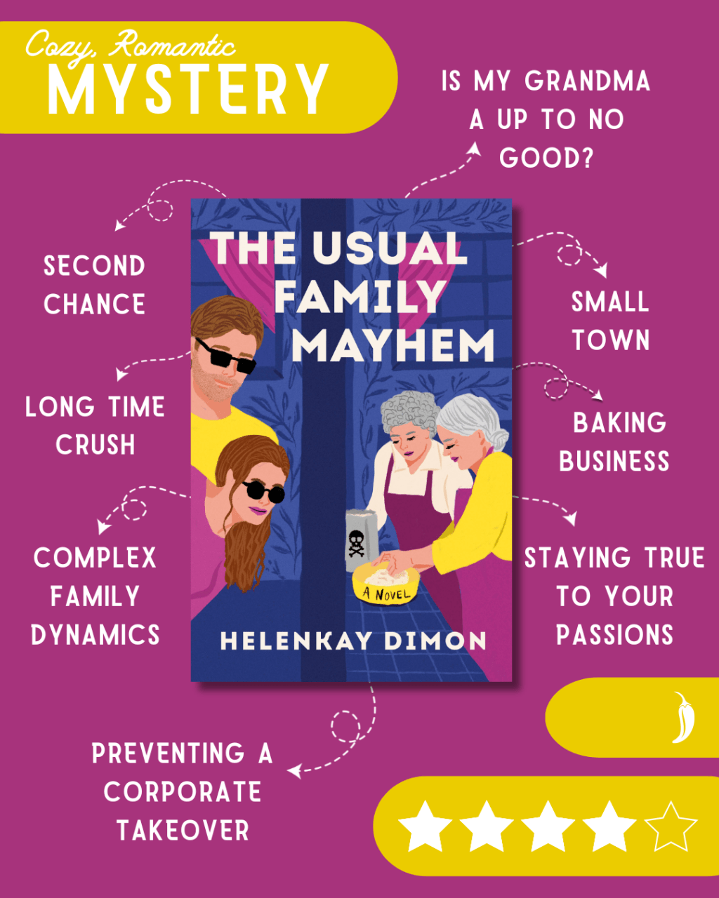 As Kasey digs deeper into a string of suspicious deaths involving abusive men in town, she starts to wonder – could her grandma and Celia be serving up more than just muffins? With a reluctant but increasingly supportive Jackson by her side, she sets out to uncover the truth. Along the way, she finds family, laughter, love, and a long-simmering attraction that’s impossible to ignore.