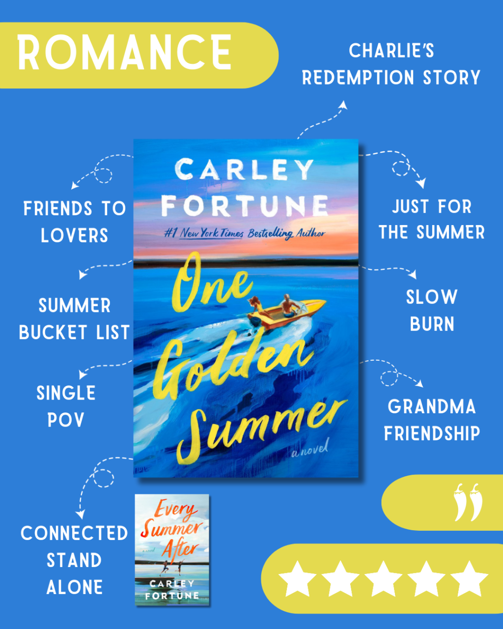 But the past collides with the present when she meets Charlie Florek – the man in the yellow boat. Confident, disarming, and somehow able to see right through her, Charlie and Alice begin a new kind of summer, one full of emotional discovery, longing, laughter (fueled by Alice’s summer bucket list) and the question of what comes after the sunset fades.