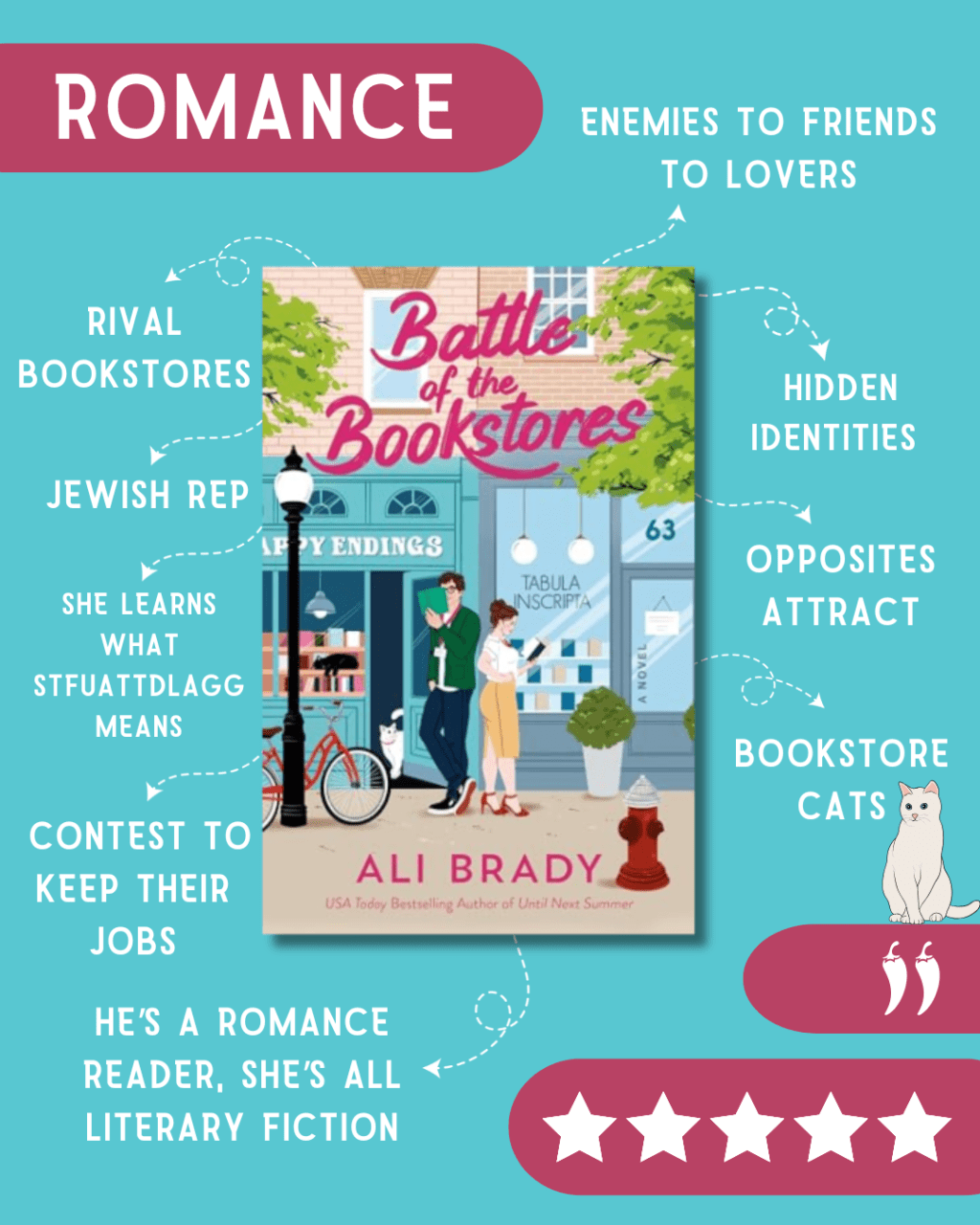 Battle of the Bookstores by Ali Brady (June 3, 2025) Many thanks to Berkley Romance and PRH Audio for the gifted advanced listening and reading copies! #berkley #berkleypartner #prhaudioinfluencer