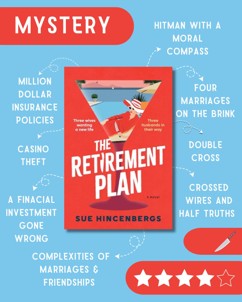 The Retirement Plan by Sue Hincenbergs (May 6, 2025) Thank you, William Morrow, Harper Audio, and Libro.fm for the gifted advanced reading and listening copies of this sharp, suspenseful, and surprisingly heartfelt novel!