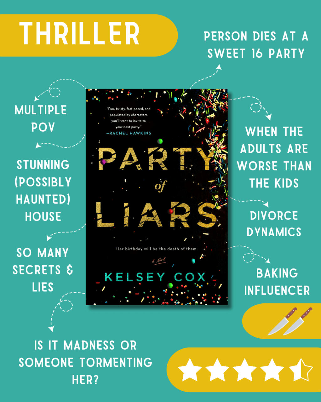 Party of Liars by Kelsey Cox (July 1, 2025) Many thanks to Macmillan Audio and Minotaur Books for the gifted advanced listening copy!