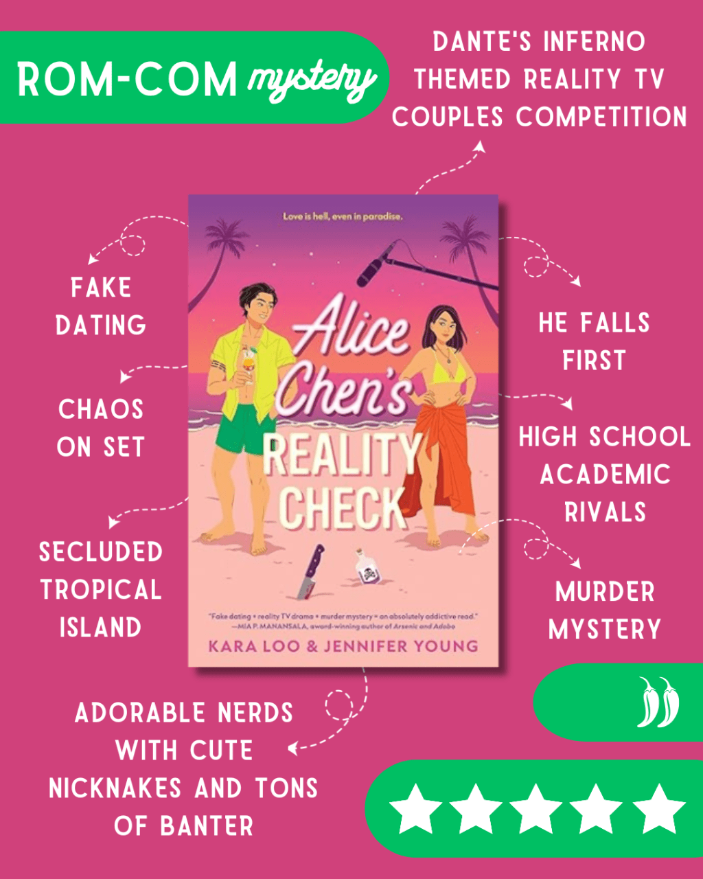 Alice Chen’s Reality Check by Kara Loo and Jennifer Young (June 3, 2025) – Many thanks to Quirk Books for the gifted advanced reading copy. If you are looking for a fun rom-com with a side of murder mystery, this one had me laughing out loud the whole time!