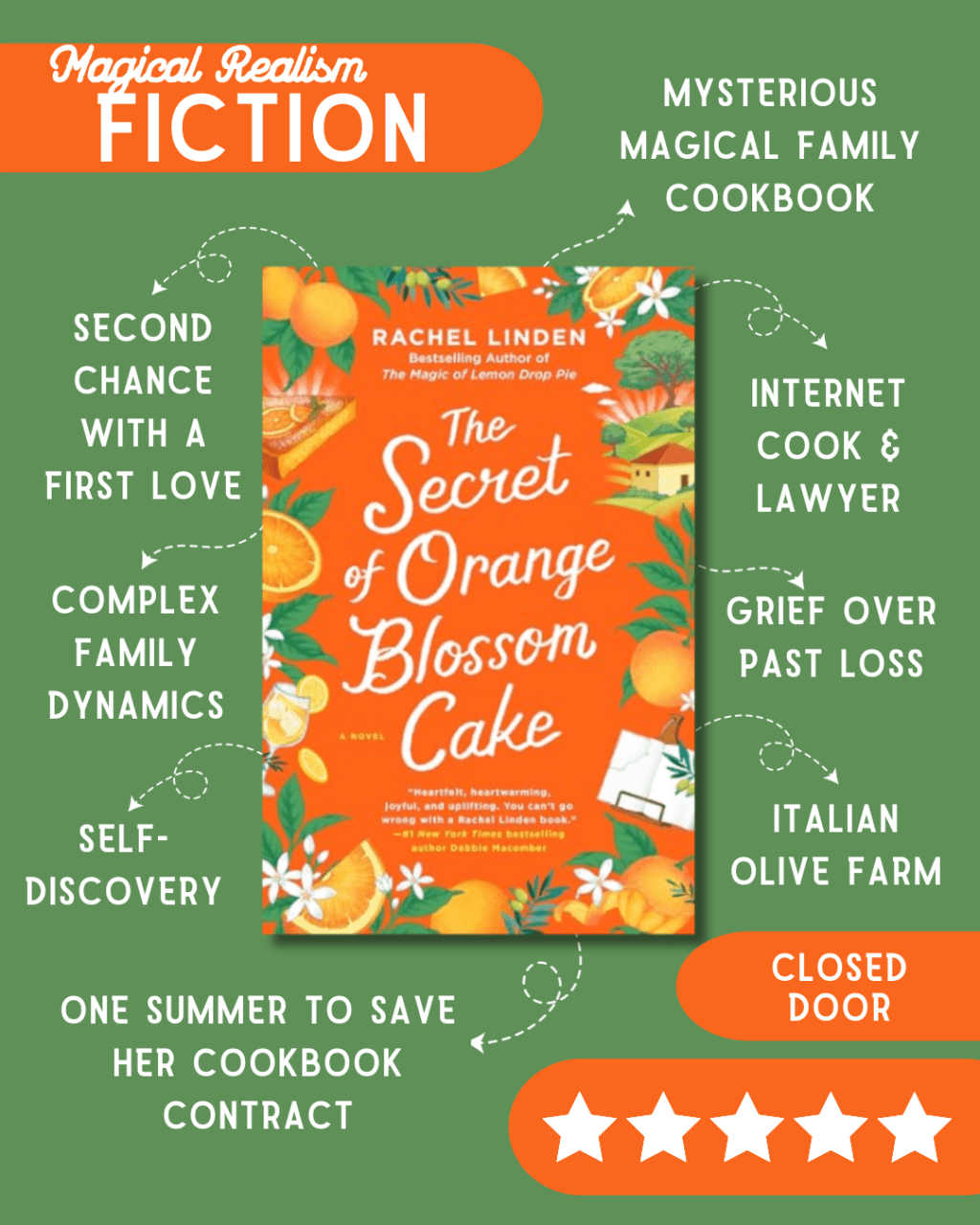 This is a tender, gorgeously written story about family, forgiveness, and self-discovery. Rachel Linden’s lush descriptions will make you crave every dish and dream of long, slow summer evenings at a table full of food, wine, and love. While there’s a delightful second-chance romance woven in, the true magic is Jules’s journey to find her voice, her passion, and her place. I especially loved the way her relationship with her younger half-sister unfolded – the reminder that there is no such thing as “half family” was deeply moving.