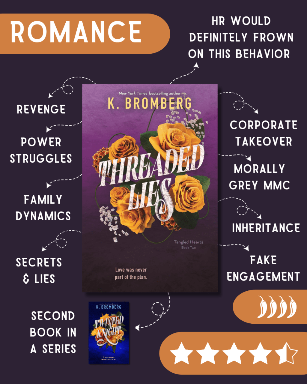 Threaded Lies by K. Bromberg (Oct 14, 2025) Thank you @macmillan.audio and @brambleromance for the #gifted advanced listening copy! I’ve been counting down since last fall’s jaw-dropping cliffhanger in book one, and this sequel did not disappoint.