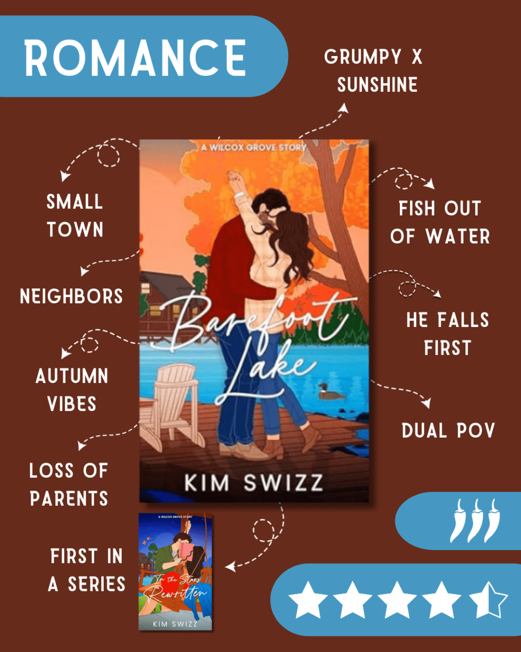 Barefoot Lake by Kim Swizz (Oct 1, 2024) – If you love fall vibes, small towns and infuriatingly handsome neighbors, let me introduce you to the first book in the Wilcox Grove series!