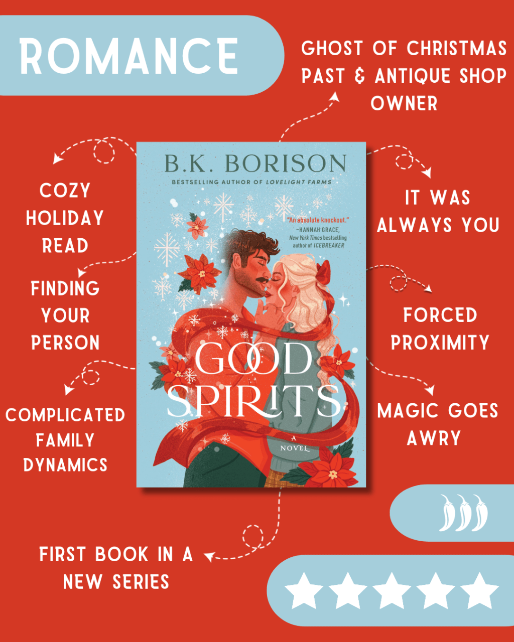 So, in 2021 I read Lovelight Farms and it became my absolute favorite holiday romance. For four years, no book came close – until BK Borison wrote another holiday romance. This book is simply perfect. I swooned, laughed, cried uncontrollably, and smiled ear-to-ear. The characters are beautifully rendered, the story is so rich and compelling, there’s a heart-wrenching third act that isn’t a breakup but delivers the most emotionally heavy narrative. And both Harriet and Nolan have important stories of understanding separate from each other that make it a powerful story of personal growth and understanding.