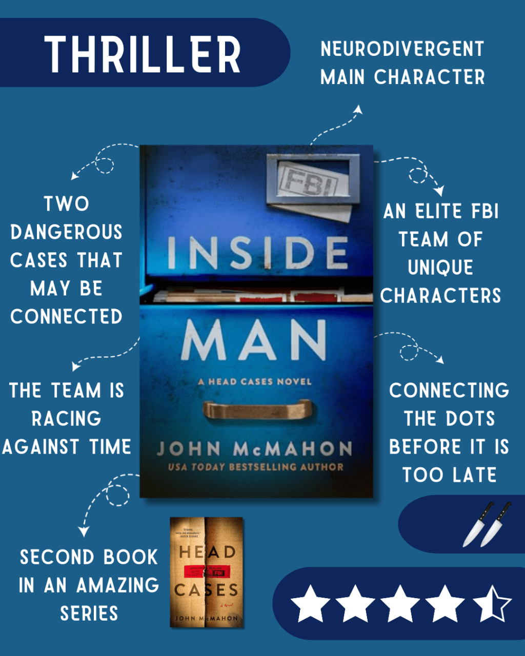 Head Cases was, hands down, my favorite thriller of 2025. It was smart, perfectly crafted, and full of addictive characters that I just loved. Inside Man was one of my most anticipated books of 2026 and I’m thrilled that is was such a fantastic ride. Rarely in thrillers do you get deeply constructed characters, but in these books we do – and it was wonderful to see all of them evolve from book-to-book. Like the first book, this one starts with a fantastic “hook” then dives deep into the investigation, culminating in a pulse-pounding conclusion. An it was fantastic.