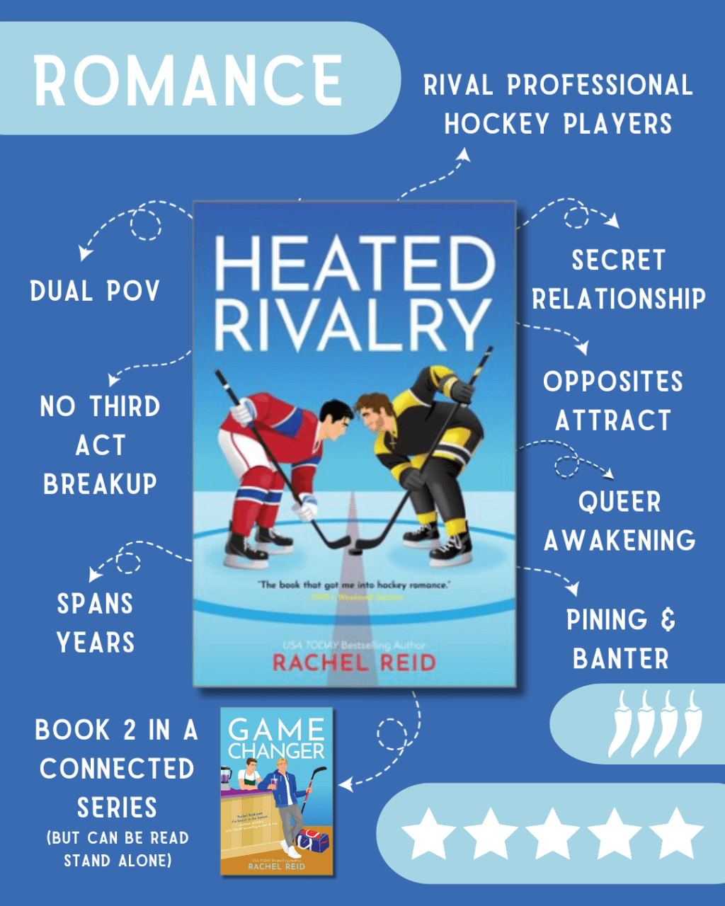Heated Rivalry by Rachel Reid (March 25, 2019) With this one premiering as a limited series on HBO Max on 11/28/2025, I decided it was time to get it off the TBR! Thanks to @sarahtdubbwrites for talking about it on her account and reminding me to read it. I grabbed the audio through @everand_us and the digital book on @hoopladigital