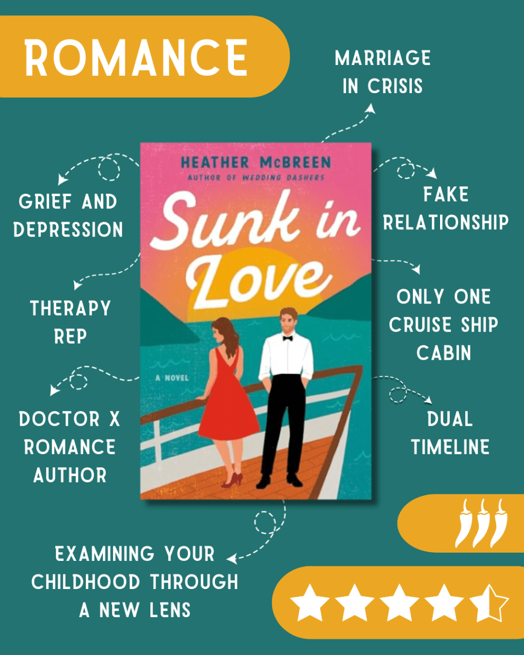 I love it when the structural decisions an author makes about a book enhance the overall reading experience, and McBreen has done that here with her use of a dual timeline structure. We bounce between the present on the cruise, and vignettes flashing back all the way to their first meeting, pulling the timelines closer together over the course of the story. Make no mistake – these characters are messy. I felt for them both in the baggage they carried that caused them to not bring their full selves into their marriage. It is also just a whole lot of fun cruise-based hijinks with lots of fun tropes that will have you wondering why these nerds ever thought they would end up any way but together.